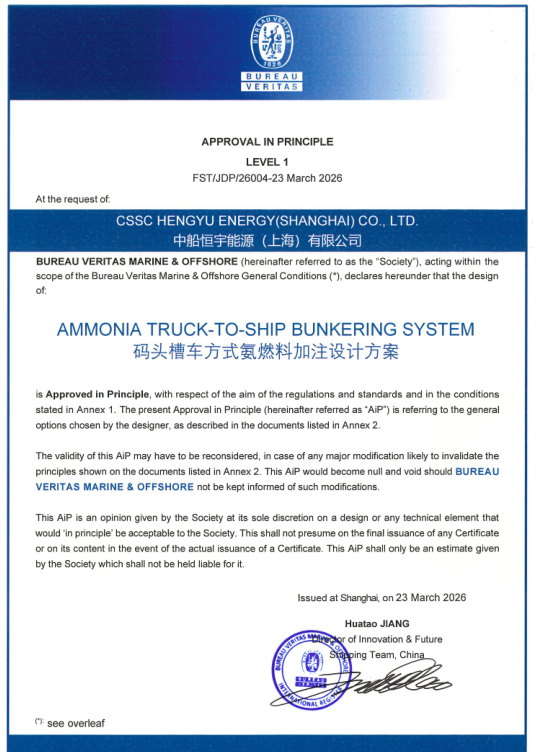 近日,中船物資恒宇能源公司氨燃料碼頭槽車式氨燃料加注設(shè)計(jì)方案獲AIP認(rèn)證。項(xiàng)目研發(fā)團(tuán)隊(duì)明確低溫液氨為加注介質(zhì),錨定核心研發(fā)方向,開展全面市場(chǎng)調(diào)研與行業(yè)摸排,持續(xù)深耕技術(shù)路徑探索,反復(fù)進(jìn)行方案論證迭代,成功攻克多項(xiàng)技術(shù)瓶頸,最終形成安全可靠、高效便捷、可落地實(shí)施的技術(shù)方案,順利通過嚴(yán)苛評(píng)審。