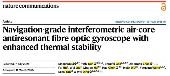 4月14日,中船集團旗下七〇七所和暨南大學等構(gòu)建的深度合作研究團隊,在國際權(quán)威頂級期刊《Nature?Communications》發(fā)表了題為“Navigation-grade interferometric air-core anti-resonant fibre optic gyroscope with enhanced thermal stability”的最新研究成果,實現(xiàn)了空芯光纖陀螺領(lǐng)域的新突破。