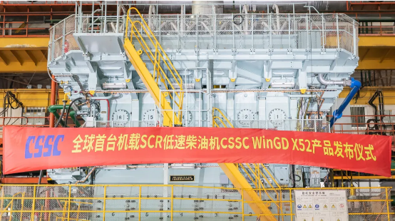 7月22日,由中國(guó)船舶集團(tuán)有限公司旗下中船動(dòng)力(集團(tuán))有限公司自主研發(fā)、大連船用柴油機(jī)有限公司建造的全球首臺(tái)機(jī)載SCR(選擇性催化還原系統(tǒng))船用低速機(jī)CSSC WinGD X52正式向全球發(fā)布。工信部黨組成員、總工程師田玉龍,中國(guó)船舶集團(tuán)黨組副書記、總經(jīng)理?xiàng)罱鸪沙鱿l(fā)布儀式并講話。國(guó)家相關(guān)部委、地方政府、船級(jí)社、航運(yùn)公司、造船企業(yè)等相關(guān)領(lǐng)導(dǎo)和專家出席發(fā)布儀式。
