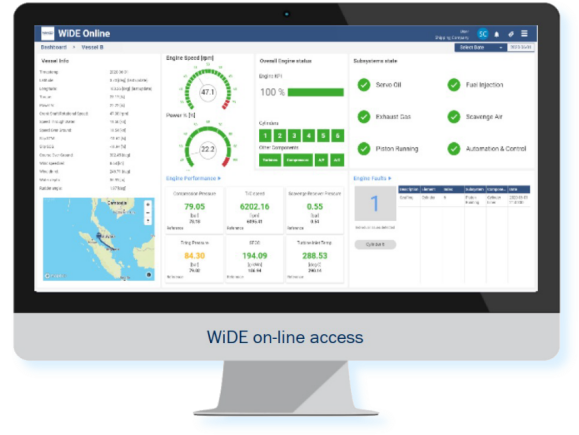 與X-DF控制平臺相輔相成的是智能數(shù)字專家系統(tǒng)(WiDE),它如同主機的忠誠衛(wèi)士,全方位守護主機安全平穩(wěn)運行。該系統(tǒng)通過5G通信技術(shù),對主機運行數(shù)據(jù)進行實時抓取和傳輸。全主機監(jiān)測點位超過300個,可實現(xiàn)對主機關(guān)鍵部位和運行參數(shù)的24小時不間斷實時監(jiān)測。一旦主機運行出現(xiàn)異常跡象,哪怕只是極其細微的參數(shù)波動,WiDE系統(tǒng)都能迅速捕捉,向24小時專家團隊求助,自動調(diào)取問題數(shù)據(jù)。專家通過分析數(shù)據(jù),從而更準(zhǔn)確、快速地診斷主機故障,為及時維修提供了有力支持。