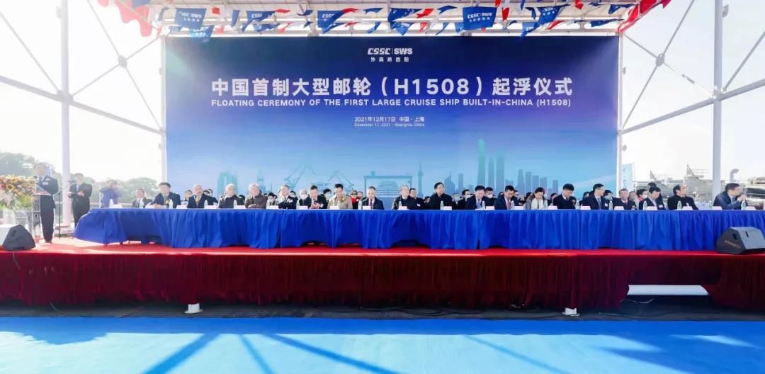 中國船舶集團(tuán)黨組書記、董事長、大型郵輪工程總指揮雷凡培,上海市人大常委會副主任、市總工會主席莫負(fù)春,中國船舶集團(tuán)黨組成員、副總經(jīng)理孫偉,以及上海市經(jīng)信委、上海市交通委和上海市浦東新區(qū)、寶山區(qū)、黃浦區(qū)等有關(guān)負(fù)責(zé)人出席起浮儀式。