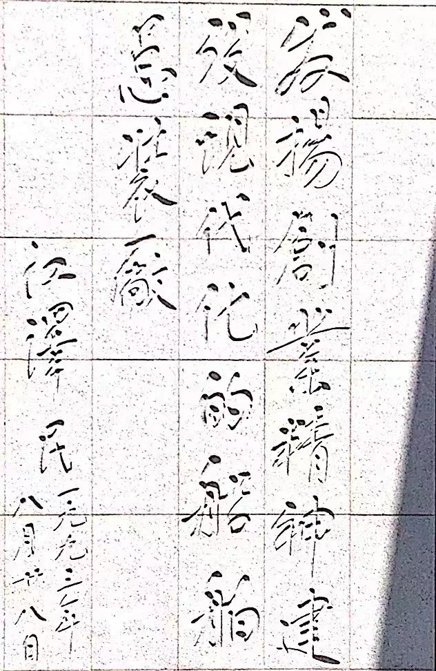 1993年8月28日,江澤民同志為大船集團(tuán)題詞“發(fā)揚創(chuàng)業(yè)精神,建設(shè)現(xiàn)代化的船舶總裝廠”。