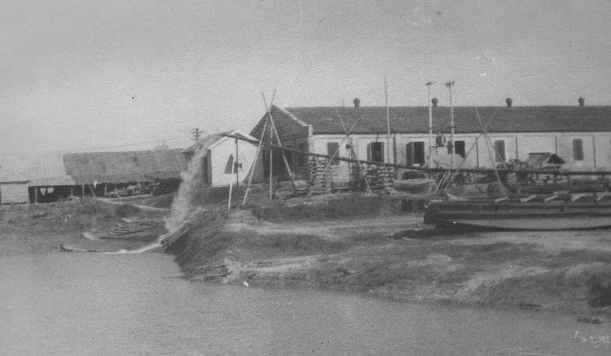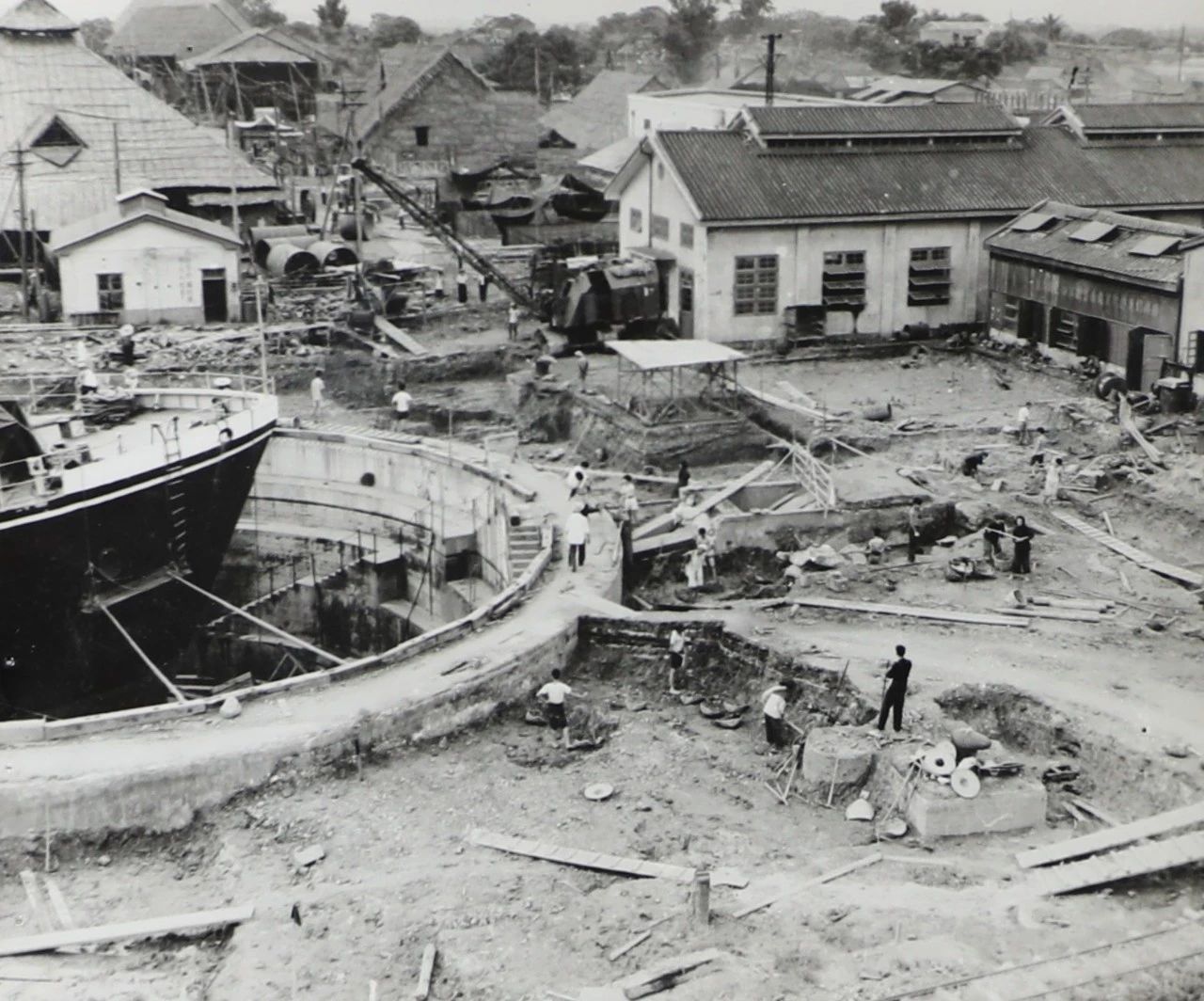 1958年廣州,1958年,廣船國(guó)際的前身廣州造船廠的造船塢,圖中的履帶式起重機(jī)是廣州造船廠主要的起重設(shè)備。
