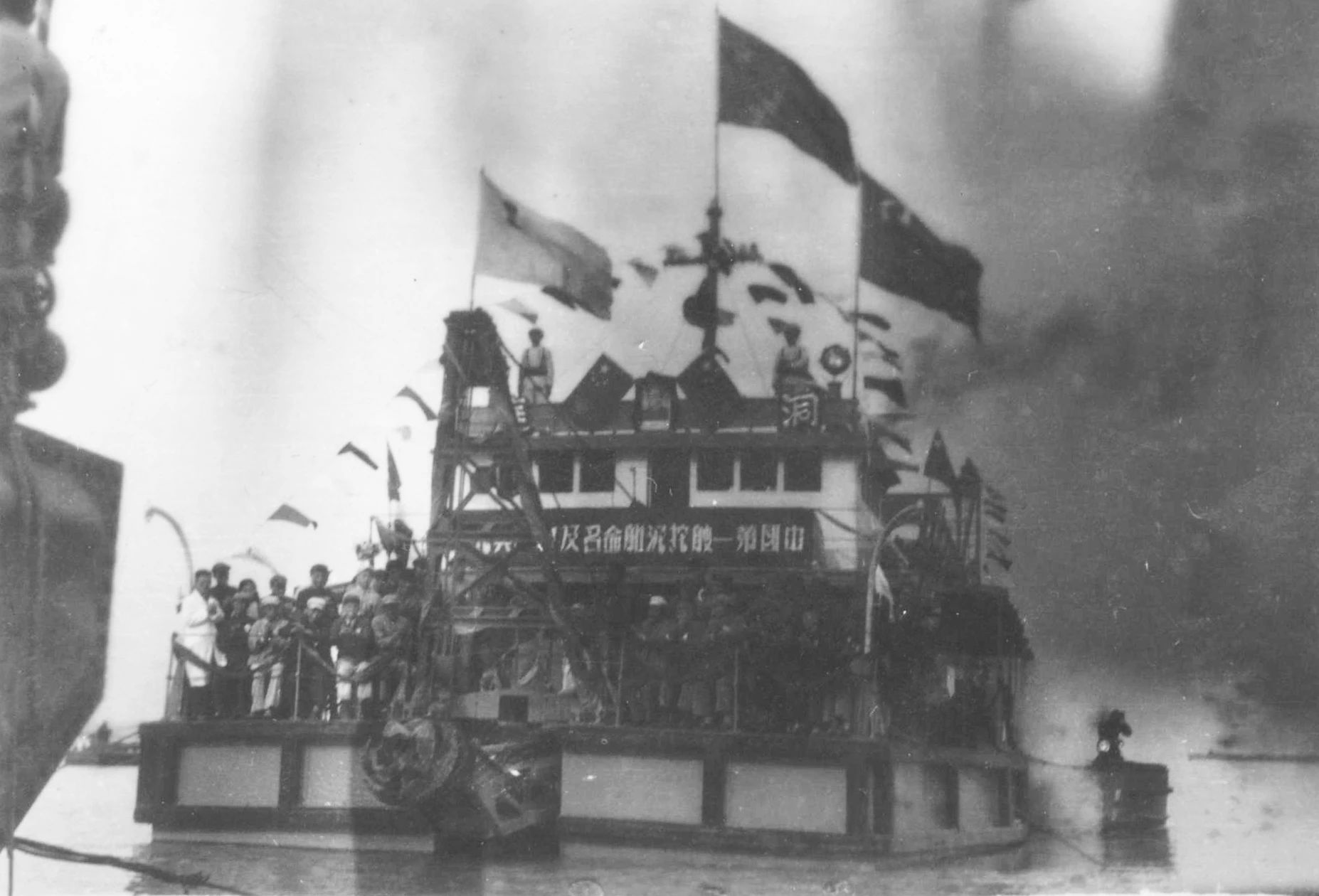 1949年7月上海,1949年7月23日,江南造船所舉行“職工慶功大會(huì)”。上海市市長(zhǎng)兼軍管會(huì)主任陳毅、副市長(zhǎng)曾山、華東海軍司令員張愛(ài)萍、上海市總工會(huì)主席劉長(zhǎng)勝等出席了大會(huì)。會(huì)上總結(jié)修復(fù)廠房設(shè)備的經(jīng)驗(yàn),宣布恢復(fù)生產(chǎn)表彰有功人員。全所有 134人被評(píng)為一、二、三等功臣受到表彰。