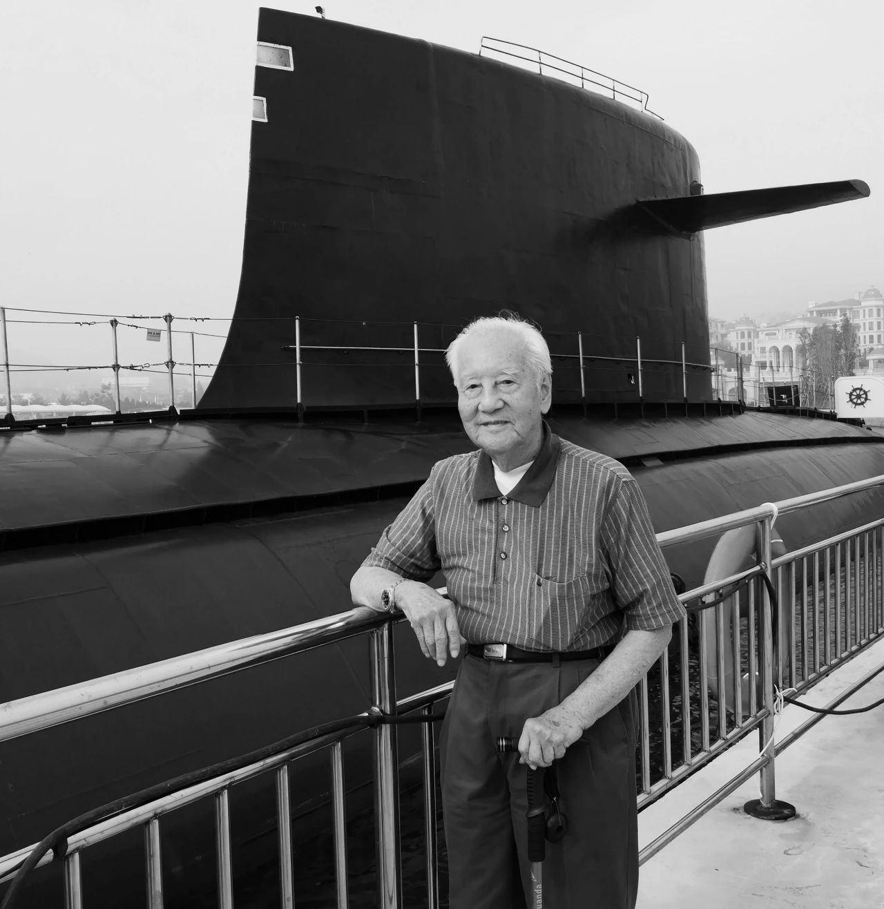 2018年,92歲高齡的黃旭華來到位于青島的海軍博物館。他們一行人如正常游客一樣買門票進(jìn)去參觀,卻在檢票口被該館官兵認(rèn)出。海軍博物館館長聞訊趕來,眾人感到黃旭華年事已高,建議其不要再下到401核潛艇,就在碼頭上向他匯報該艇入館以來的情況。但黃旭華夢牽子嗣,執(zhí)意下艇參觀。年已92高壽的黃旭華,在核潛艇這樣狹小的空間活動,尤其是進(jìn)出直徑不足1米的水密門,難度可想而知。進(jìn)艇之后,黃旭華駐足凝視著艇內(nèi)的每一個部位、每一臺設(shè)備,進(jìn)住艙、上戰(zhàn)位,用他的話說:“一點都不累!”并應(yīng)邀在留言簿上揮毫題詞:“騎鯨蹈海日游八萬里五洋捉鱉。”這正是黃旭華雖已過鮐背之年,仍壯懷激烈的心境寫照。