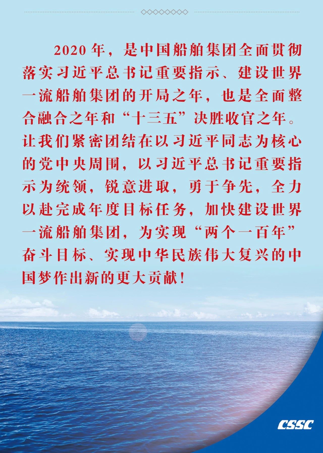 ??1月19日,在中國(guó)船舶集團(tuán)有限公司2020年度工作會(huì)議上,中國(guó)船舶集團(tuán)黨組書記、董事長(zhǎng)雷凡培作了題為《以習(xí)近平總書記重要指示為統(tǒng)領(lǐng) 奮力開啟建設(shè)世界一流船舶集團(tuán)新征程》的工作報(bào)告。