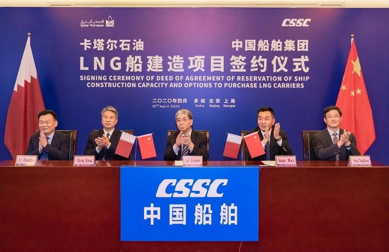????4月22日,中國(guó)船舶集團(tuán)與卡塔爾石油公司在中國(guó)北京、上海及卡塔爾多哈三地以“云簽約”方式聯(lián)合簽署“中國(guó)船舶—卡塔爾石油液化天然氣(LNG)船建造項(xiàng)目”協(xié)議,所涉訂單總金額超過(guò)200億元人民幣。這是卡塔爾天然氣項(xiàng)目首批訂單,也是中國(guó)船企迄今承接的金額最大的造船出口訂單。中國(guó)船舶集團(tuán)和卡塔爾石油將強(qiáng)強(qiáng)聯(lián)手,依托各自?xún)?yōu)勢(shì)在能源運(yùn)輸、裝備制造及全球化服務(wù)等領(lǐng)域開(kāi)展廣泛合作。