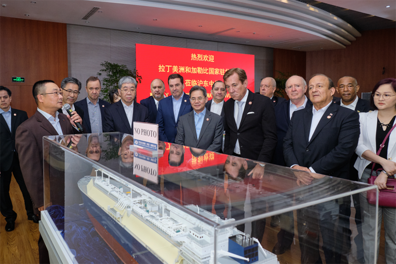 拉美和加勒比國(guó)家駐華使節(jié)代表團(tuán)參觀考察中國(guó)船舶集團(tuán)長(zhǎng)興造船基地