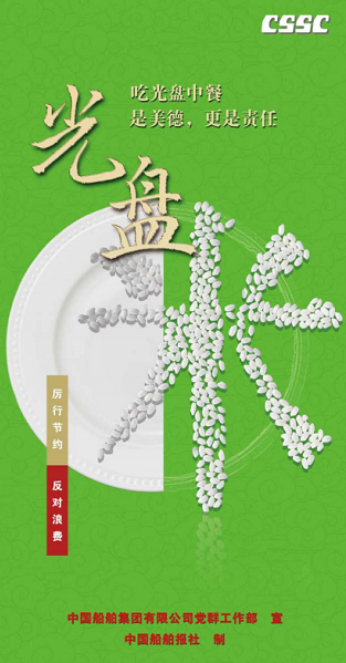 勤儉節(jié)約是中華民族的傳統(tǒng)美德,也是中國共產(chǎn)黨的優(yōu)良作風(fēng)。為深入貫徹落實(shí)習(xí)近平總書記重要指示精神,中國船舶集團(tuán)黨組對(duì)制止餐飲浪費(fèi)作出全面部署,要求集團(tuán)公司廣大黨員干部在厲行節(jié)約、反對(duì)浪費(fèi)方面走在前列、作出表率,大力弘揚(yáng)勤儉節(jié)約的光榮傳統(tǒng)。