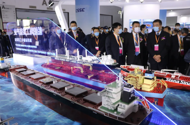 ????中國船舶集團(tuán)行業(yè)領(lǐng)先的全產(chǎn)業(yè)鏈產(chǎn)品和驚艷的舞臺布置引起了與會嘉賓的強(qiáng)烈興趣,在中國船舶集團(tuán)黨組成員、副總經(jīng)理孫偉陪同下,中國船舶工業(yè)行業(yè)協(xié)會會長郭大成,工業(yè)和信息化部裝備二司副司長徐春榮,中國船東協(xié)會常務(wù)副會長張守國、中國造船工程學(xué)會副理事長李國安、遼寧省工業(yè)和信息化廳副廳長路通、中遠(yuǎn)海運(yùn)重工有限公司董事長、總經(jīng)理梁巖峰、中國船級社副總裁孫峰等嘉賓參觀了中國船舶集團(tuán)的展區(qū),并詳細(xì)了解了中國船舶集團(tuán)在產(chǎn)品研發(fā)、科技創(chuàng)新、市場開拓等方面取得的最新進(jìn)展。