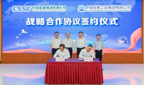 6月22日,中國船舶集團有限公司與中國機械工業(yè)集團有限公司在京簽署了戰(zhàn)略合作協(xié)議。中國船舶集團黨組書記、董事長雷凡培,黨組副書記、總經(jīng)理楊金成,黨組成員、副總經(jīng)理錢建平,國機集團黨委書記、董事長張曉侖,黨委副書記、總經(jīng)理吳永杰,黨委常委、副總經(jīng)理白紹桐出席了簽約儀式。楊金成、吳永杰分別代表雙方簽約。