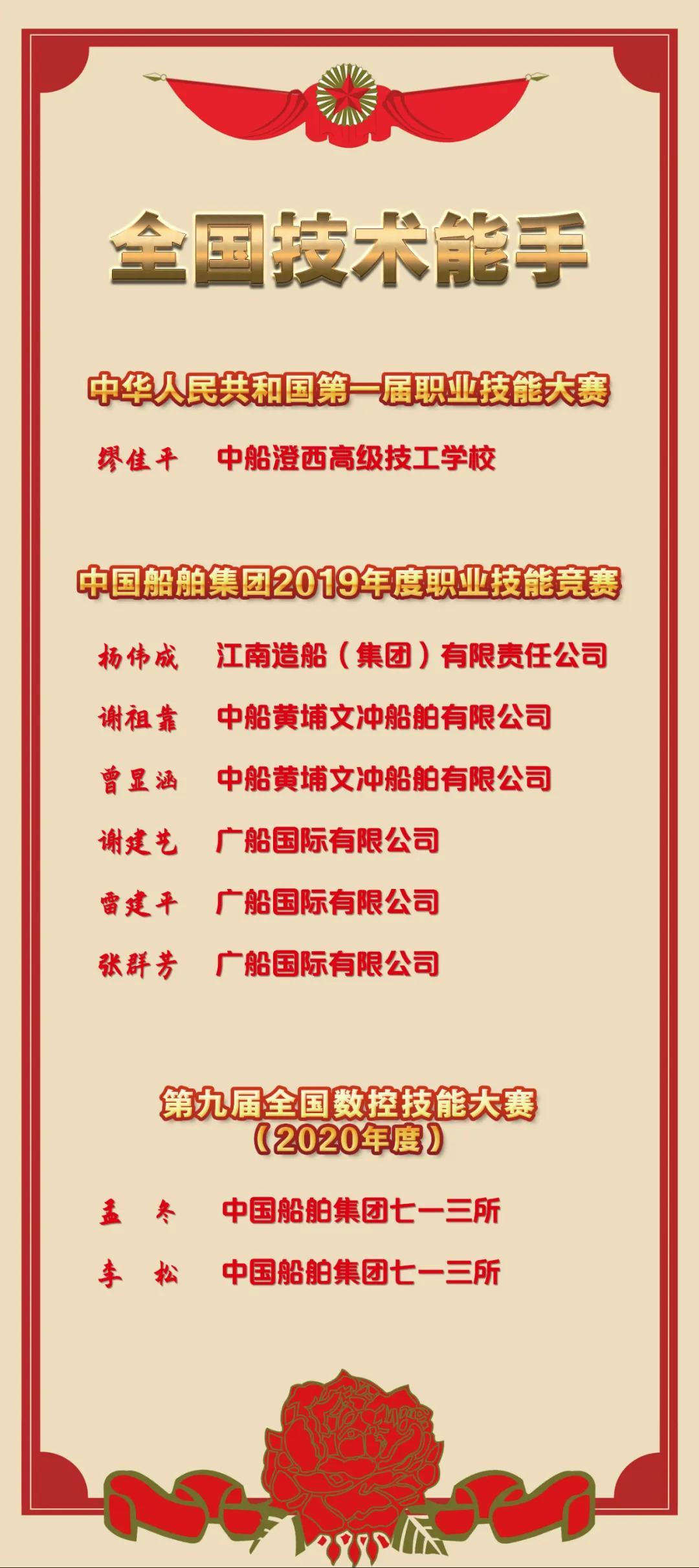 中國(guó)船舶集團(tuán)“全國(guó)技術(shù)能手”再添 9 人!