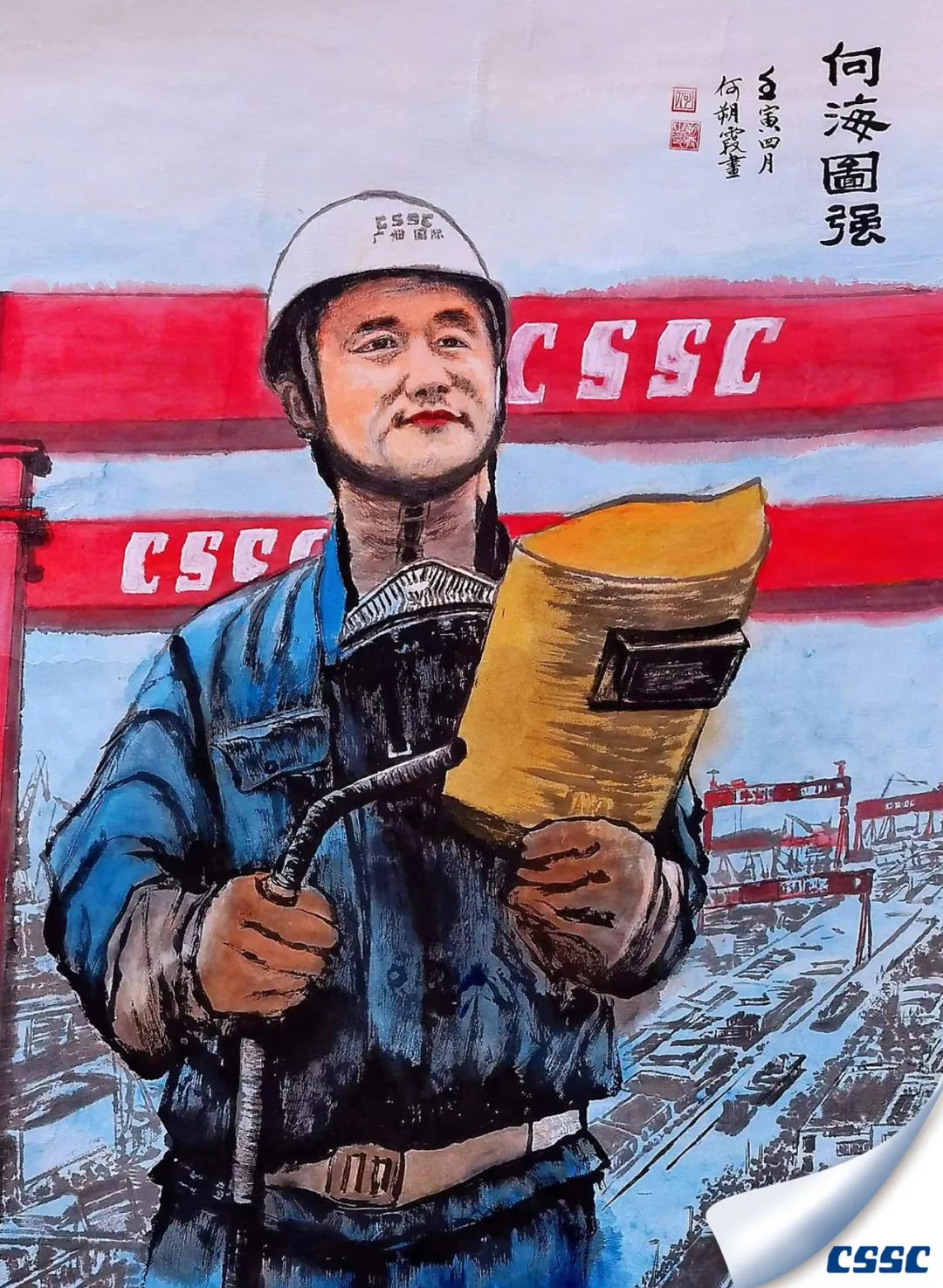 繪畫大師用五彩畫筆將全國(guó)五一勞動(dòng)獎(jiǎng)獲得者電焊工馮文虎的形象躍然卷上。