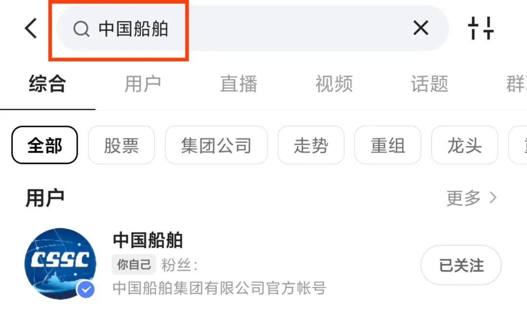 在搜索欄輸入“中國船舶”
