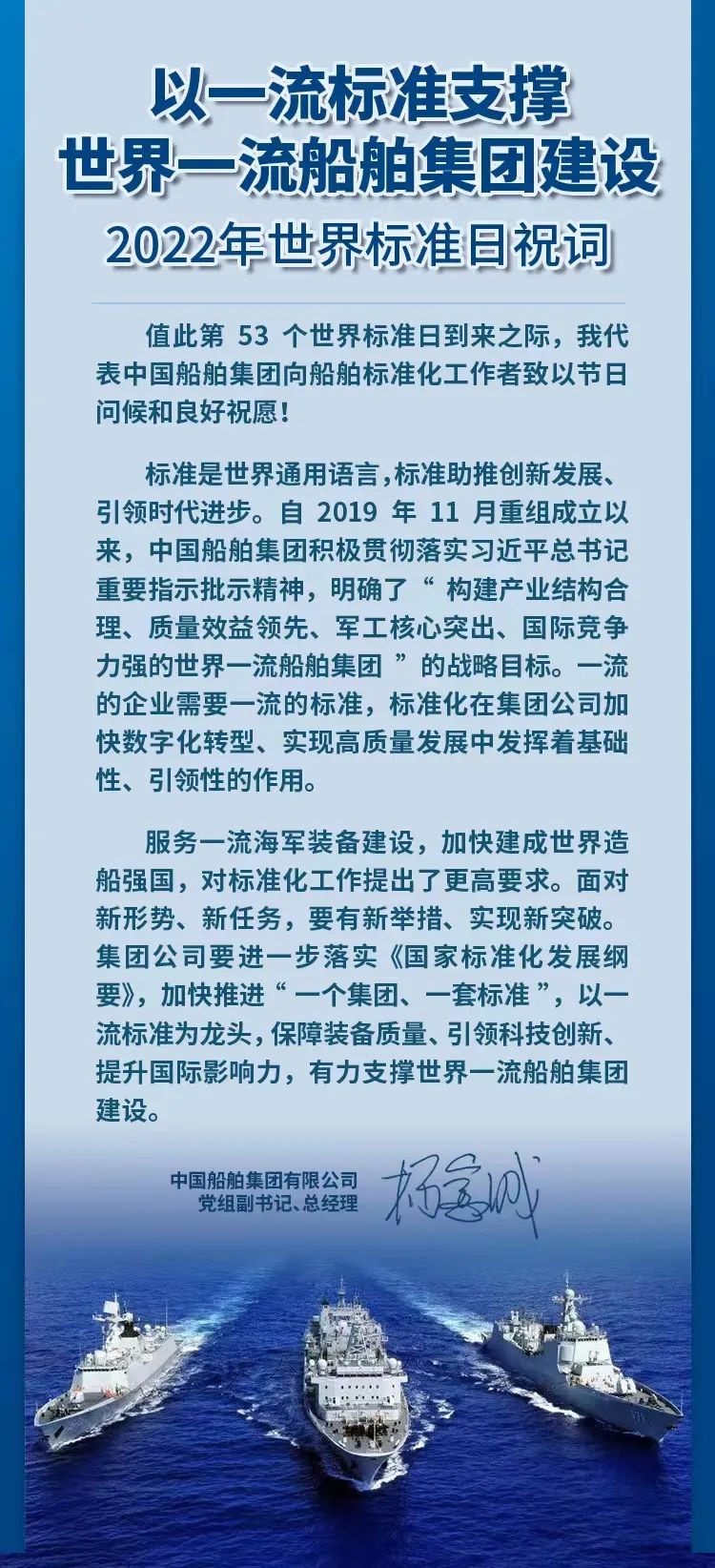 10月14日,中國船舶集團舉行第53屆世界標準日主題活動,主題為“以一流標準支撐世界一流船舶集團建設(shè)”