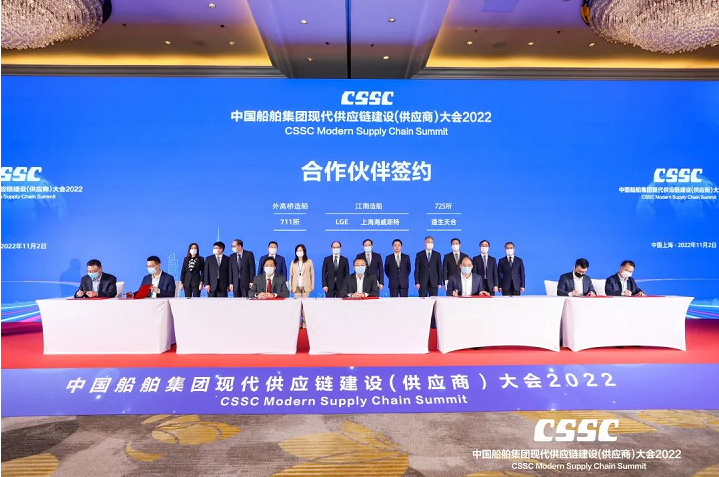 11月2日,中國船舶集團有限公司2022現(xiàn)代供應鏈建設(供應商)大會在上海舉行。會議旨在貫徹落實黨的二十大精神,充分發(fā)揮中國船舶集團作為中國船舶工業(yè)產業(yè)鏈鏈長的主體支撐和融通帶動作用,打造船舶工業(yè)現(xiàn)代供應鏈高端交流平臺,凝聚廣泛共識,深化務實合作,服務國家戰(zhàn)略,共同致力建設和維護穩(wěn)定、安全、暢通、高效、可控的全球產業(yè)鏈供應鏈體系,共同促進產業(yè)的高端化、綠色化和智能化轉型,共同引領中國船舶工業(yè)高質量發(fā)展,為“造船強國”和上海“五大中心”建設貢獻中國船舶力量。
