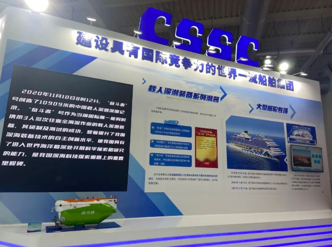 在重大科技專項(xiàng)工程展區(qū),中國船舶集團(tuán)集中展示了在深海科學(xué)研究和海洋資源開發(fā)領(lǐng)域深化實(shí)施的“蛟龍”號、“深海勇士”號、“奮斗者”號三型載人深潛裝備等一批重大科技專項(xiàng)工程,以及取得的突破性、標(biāo)志性的成果。其中,展會現(xiàn)場展示的“奮斗者”號創(chuàng)造了10909米的中國載人深潛深度紀(jì)錄。
