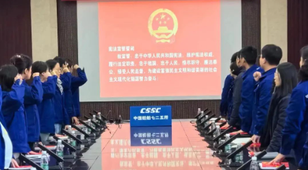 今年12月4日是第十個(gè)國家憲法日,中國船舶集團(tuán)于12月1日至7日,以“大力弘揚(yáng)憲法精神,建設(shè)社會主義法治文化”為主題開展了法治宣傳周活動,深入學(xué)習(xí)貫徹習(xí)近平法治思想、習(xí)近平文化思想,大力弘揚(yáng)憲法和法治精神,在集團(tuán)公司上下營造濃厚的法治氛圍,推動尊法學(xué)法守法用法在全集團(tuán)蔚然成風(fēng)。