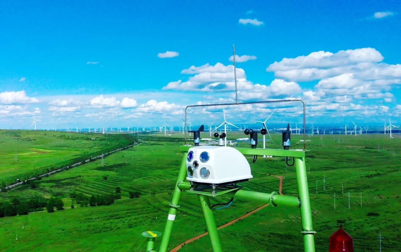 這是八院鵬力大氣海洋公司的全國(guó)產(chǎn)化測(cè)風(fēng)激光雷達(dá),它可測(cè)量風(fēng)速/風(fēng)向、湍流強(qiáng)度、風(fēng)切變等信息,是風(fēng)電領(lǐng)域的超強(qiáng)輔助。它就像“高高在上”的觀風(fēng)者,在蒼茫天空中等風(fēng)來。