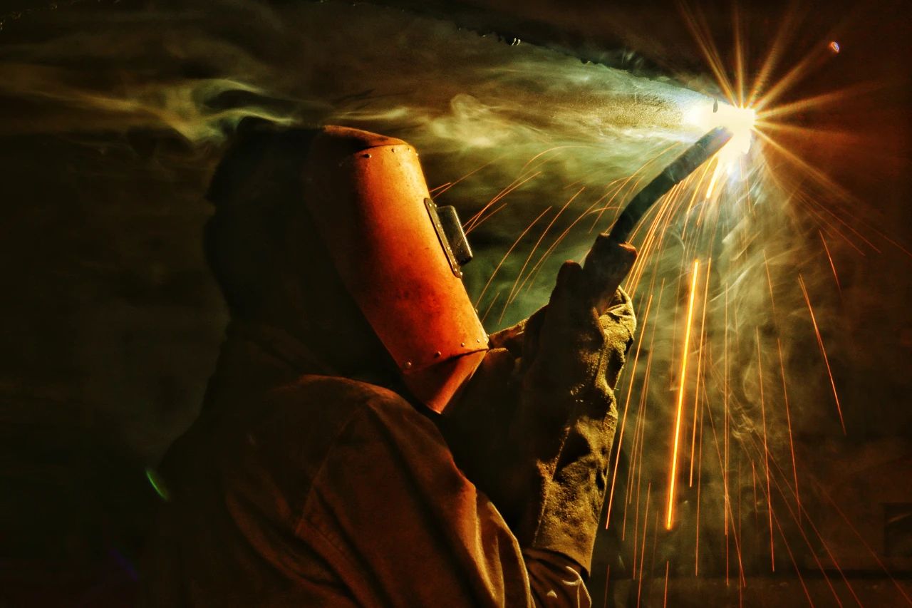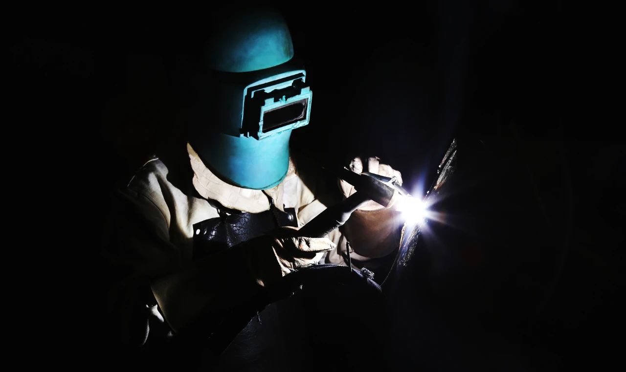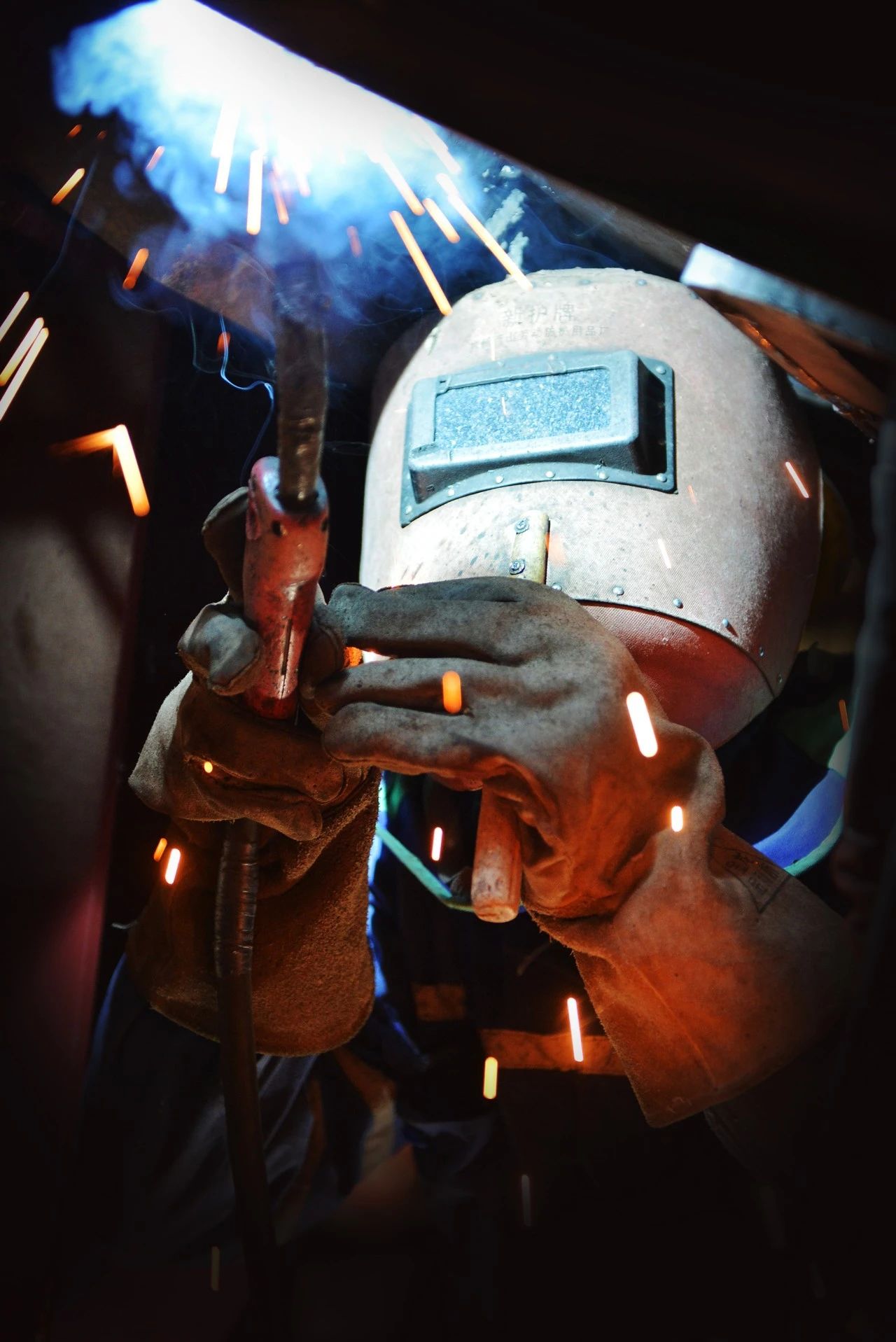 一位“全副武裝”正在進(jìn)行焊接作業(yè)的焊工,焊花飛舞在狹小的工間里,折射出如彩云般的景象,猶如巨人正在“補天”。