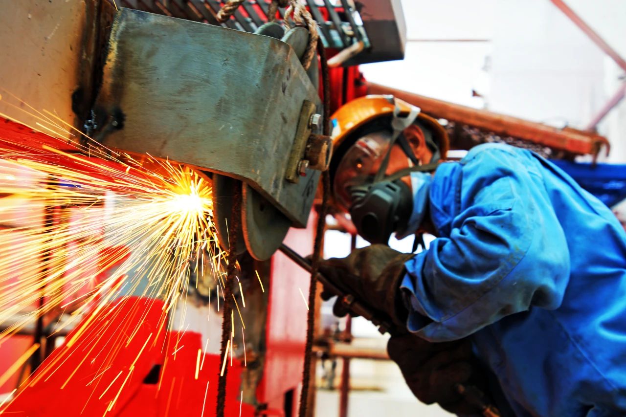電焊工,就文沖修造最美的一線工人,他們從頭到腳“全副武裝”,一副墨鏡,一個面罩,一套包裹的嚴(yán)嚴(yán)實實的工作服是他們的色調(diào)。此起彼伏吱吱作響的燒焊聲,黃紅藍(lán)色的焊花,伴著刺眼的弧光,如噴泉一般是他們奏響的樂章。