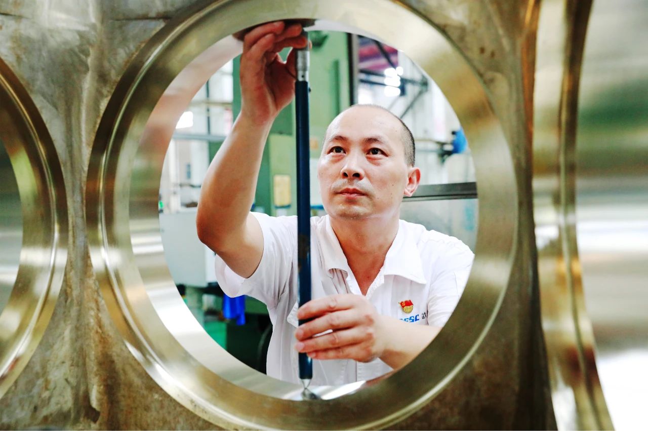 一位工人正在認(rèn)真的檢查組裝好的齒輪箱,確保其高質(zhì)量產(chǎn)出,驅(qū)動公司產(chǎn)業(yè)發(fā)展。