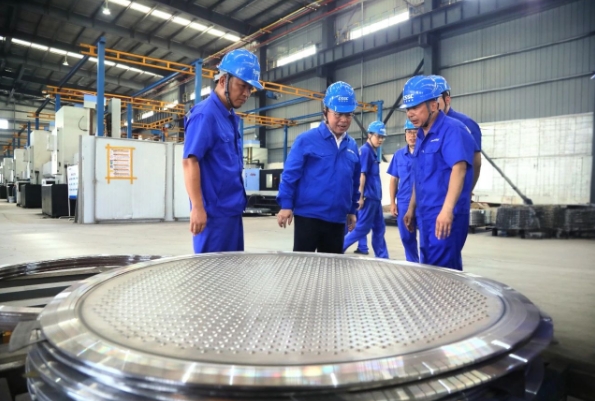 王國強(qiáng)深入科研生產(chǎn)一線,調(diào)研了相關(guān)車間、實(shí)驗(yàn)室、勞模創(chuàng)新工作室,察看了智能制造中心、重點(diǎn)產(chǎn)品、相關(guān)技術(shù)進(jìn)展;慰問了勞模工匠、一線員工,與他們就現(xiàn)場管理看板優(yōu)化、工藝改善等交流互動,勉勵他們健康生活、快樂工作,叮囑相關(guān)單位負(fù)責(zé)人要做好防暑降溫工作;聽取了相關(guān)二級管理單位生產(chǎn)經(jīng)營、深化改革、科技創(chuàng)新、人才培養(yǎng)、黨的建設(shè)等方面情況匯報。
