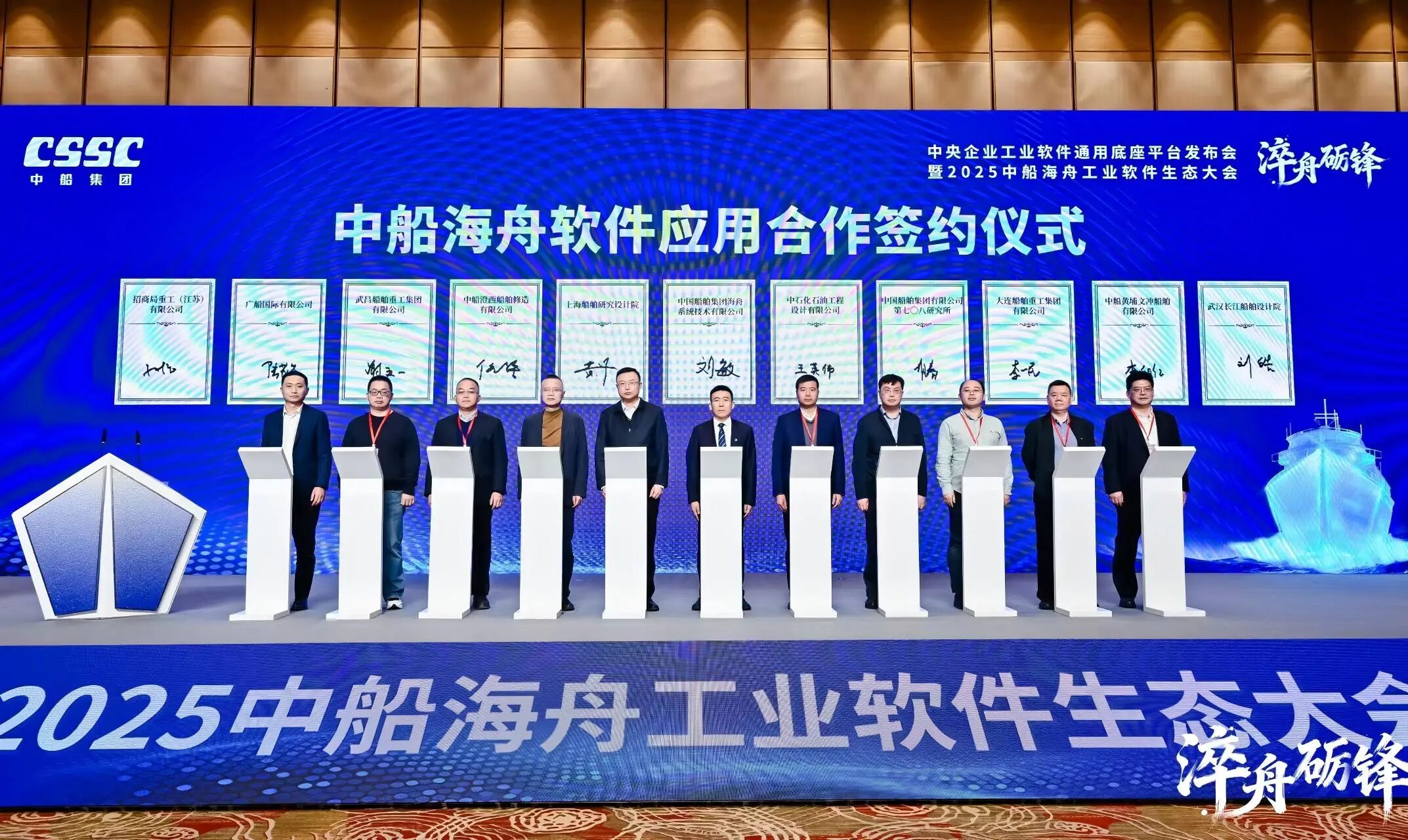 在與會嘉賓的共同見證下,中石化石油工程設(shè)計(jì)有限公司、武漢長江船舶設(shè)計(jì)院、招商重工(江蘇)有限公司以及中船集團(tuán)內(nèi)7家重要生態(tài)合作單位與中船海舟完成了中船海舟軟件應(yīng)用合作簽約儀式。此次簽約覆蓋船舶設(shè)計(jì)、能源裝備、海洋工程等多個重點(diǎn)領(lǐng)域,標(biāo)志著中船海舟產(chǎn)業(yè)協(xié)同生態(tài)進(jìn)入規(guī)?;?、實(shí)質(zhì)性落地新階段。