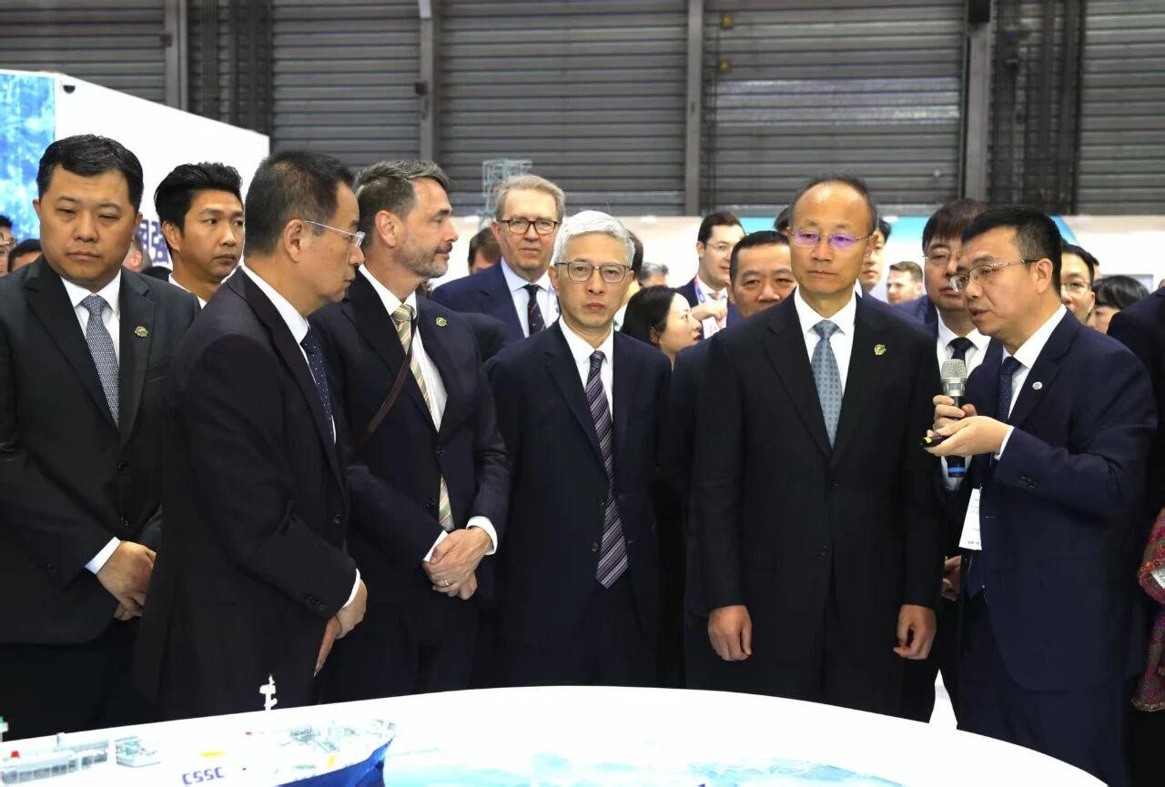 中國國際海事會展被譽為全球海事業(yè)的“風向標”,也是全球最具影響力和規(guī)模最大的海事專業(yè)會展。本次會展,中船集團展臺面積達4000平方米,以“向海圖強 智領深藍”為主題,聚焦“高端、綠色、智能、深海、極地、生態(tài)”主線,分設高端產(chǎn)品、綠色能源、智能技術、深海開發(fā)、極地探索、生態(tài)融合等六大展區(qū),集中展示中船集團品牌形象,呈現(xiàn)高端產(chǎn)品、卓越技術和生態(tài)服務。其中,“夢想”號大洋鉆探船、國產(chǎn)大型郵輪“愛達·花城號”、27.1萬立方米LNG船、核動力集裝箱船等旗艦產(chǎn)品,32.5萬噸甲醇雙燃料礦砂船等綠色船型以及WinGD10X92DF-M-1.0甲醇雙燃料主機、BrilliancE B型燃料艙、船舶碳捕集裝置等低碳零碳轉型重要裝備,“珠海云”號智能無人科考母船、“未來”號深遠海綠色智能技術試驗船等智能船舶平臺,“奮斗者”號等系列載人潛水器、“深海一號”等尖端探索裝備、深水鉆井平臺等深海開發(fā)裝備以及15萬噸智慧漁業(yè)養(yǎng)殖工船等深海裝備,“雪龍2”號極地科考破冰船、“極地”號破冰調查船等極地裝備等一系列代表中船集團最高水平和最先進研發(fā)能力的產(chǎn)品裝備和技術紛紛亮相,聚焦現(xiàn)代海事服務體系建設的生態(tài)融合區(qū)集中展示中船集團在供應鏈、貿易、服務等領域的開放合作競爭優(yōu)勢。
