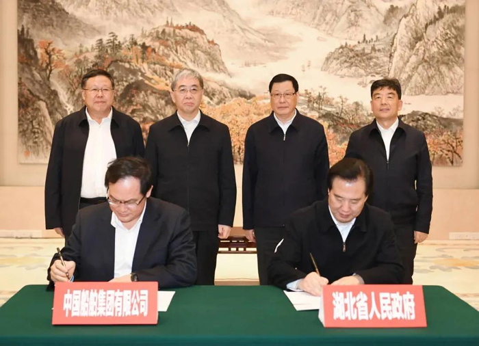 會見后,楊金成與黃楚平分別代表中國船舶集團(tuán)和湖北省政府簽署了戰(zhàn)略合作協(xié)議。