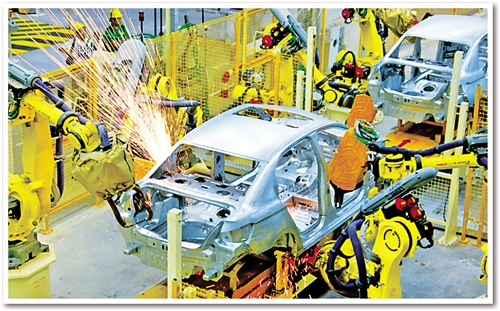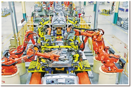 日前,記者在東風(fēng)汽車公司旗下神龍汽車公司成都工廠焊裝車間看到,占地面積約10個(gè)足球場(chǎng)的車間儼然就是一個(gè)“機(jī)器人王國(guó)”:442臺(tái)各種機(jī)器人都在忙碌著,所有點(diǎn)焊、弧焊、激光焊、螺柱焊、涂膠、包邊、鉚接、部件搬運(yùn)等“重活、累活”全部由機(jī)器人自動(dòng)完成。焊裝分廠廠長(zhǎng)孫繼勝介紹說(shuō),除442臺(tái)機(jī)器人外,車間還有另外一個(gè)“撒手锏”??六面體轉(zhuǎn)臺(tái)設(shè)備。“原來(lái)生產(chǎn)1個(gè)車型要建6條生產(chǎn)線,現(xiàn)在1條生產(chǎn)線就可以生產(chǎn)6種車型?!睂O繼勝說(shuō)。