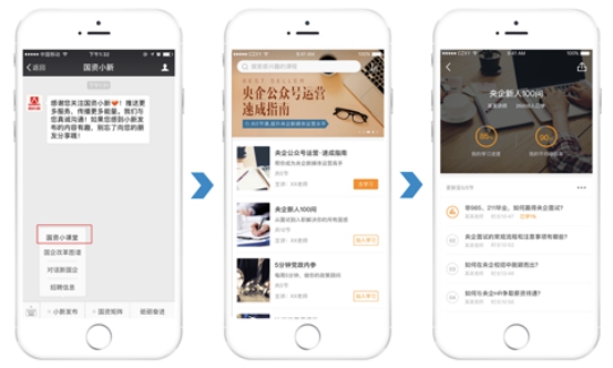 “國資小新”上線五年來,基于對粉絲需求的深度了解,先后設(shè)立了“微招聘”、“畢業(yè)去哪兒”、“新思”、“小新薦書”等欄目,并嘗試語音知識分享,為包括國企員工在內(nèi)的廣大粉絲提供招聘求職信息、分享企業(yè)管理經(jīng)驗(yàn)、解讀國企改革發(fā)展的政策和形式,幫助粉絲實(shí)現(xiàn)更好的職業(yè)規(guī)劃和發(fā)展。近期推出的“小新微課”,是“國資小新”結(jié)合最新技術(shù)手段、在這一領(lǐng)域的又一嘗試,課程免費(fèi),立足公益,為粉絲竭誠服務(wù),旨在提供更具權(quán)威性、普遍性、專業(yè)性的職業(yè)發(fā)展服務(wù)。