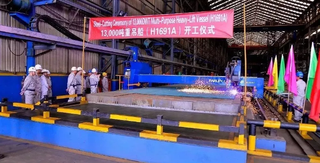 ????11月12日,滬東中華造船(集團(tuán))有限公司為中國船舶(香港)航運(yùn)租賃有限公司建造的系列13000噸重吊船中的6號船開工。該船由上海船舶研究設(shè)計(jì)院設(shè)計(jì),總長149.99米,型寬25.6米,型深13.5米,設(shè)計(jì)吃水6.8米,結(jié)構(gòu)吃水8.3米,入級DNV GL。