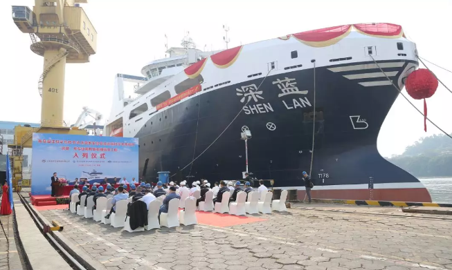 ????11月24日,青島海洋科學與技術試點國家海洋實驗室(以下簡稱“海洋試點國家實驗室”)在黃埔文沖船舶有限公司舉行了我國首艘漁業(yè)捕撈加工一體船“深藍號”入列國家海洋實驗室遠海科學考察船隊儀式。