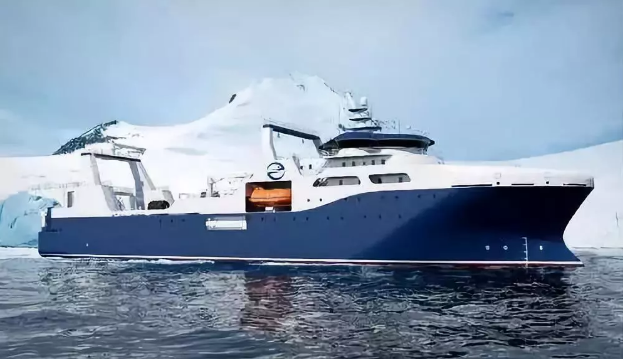 ????“深藍號”由黃埔文沖建造,七〇八所參與設計,總長約120米,型寬21.6米,設計吃水7.3米,設計航速15節(jié),主機功率8000 千瓦,載重噸約5000噸。“深藍號”是我國自主研制建造的第一艘漁業(yè)捕撈加工一體船,也是目前最大最先進的漁業(yè)捕撈加工一體船,取得近200項知識產(chǎn)權保護,實現(xiàn)了我國現(xiàn)代化漁業(yè)船舶裝備領域的重大突破,達到世界先進水平;主要用于南大洋漁業(yè)捕撈,兼顧海洋科考功能,可滿足ICE-A冰區(qū)(冰厚度0.8米)及-25℃低溫環(huán)境的營運要求。