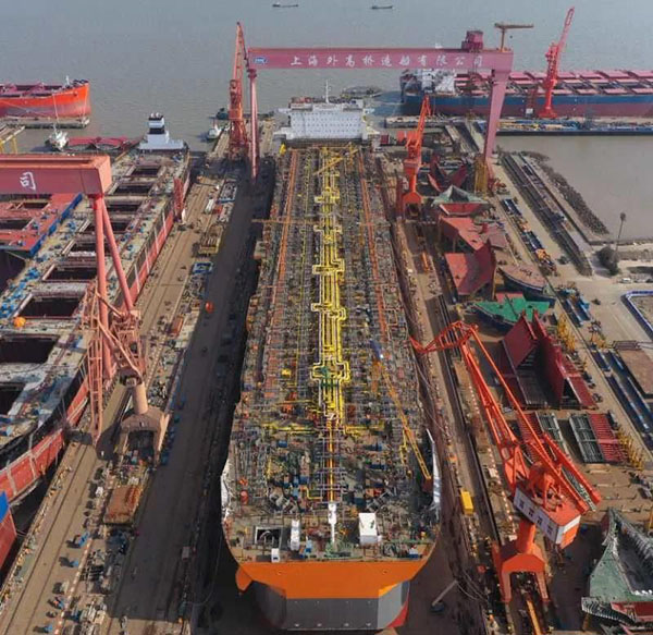 ????3月7日,中國(guó)船舶集團(tuán)所屬外高橋造船建造的一艘海上浮式生產(chǎn)儲(chǔ)油船(FPSO)順利出塢。自2月10日復(fù)工復(fù)產(chǎn)以來(lái),在不到一個(gè)月的時(shí)間里,外高橋造船已先后完成了一艘11.4萬(wàn)噸阿芙拉型成品油輪、一艘21萬(wàn)噸紐卡斯?fàn)栃蜕⒇洿鸵凰?8萬(wàn)噸好望角型散貨船開工建造,兩艘21萬(wàn)噸紐卡斯?fàn)栃蜕⒇洿鸵凰?8萬(wàn)噸好望角型散貨船完成試航,一座JU2000E型海上自升式鉆井平臺(tái)交付,一艘平臺(tái)供應(yīng)船(PSV)完工簽字,兩艘15.6萬(wàn)噸蘇伊士型原油輪建造合同簽署等生產(chǎn)節(jié)點(diǎn)。