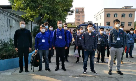 王仕杰(左一)帶隊(duì)逆行出差