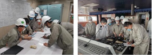 ????試航期間,滬東中華試航領(lǐng)導(dǎo)小組臨時(shí)黨支部與上海LNG技術(shù)部試航臨時(shí)黨支部,開展了“海上戰(zhàn)疫”共建活動(dòng),做細(xì)做實(shí)試航期間的疫情防控工作。