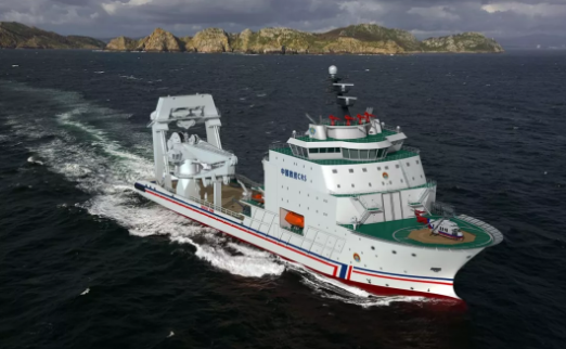 該船總長136.9米,型寬26.7米,型深11米,設(shè)計有三個機艙,具有高航速和大拖力等特點,配備DP3動力定位系統(tǒng)、全海深多波束系統(tǒng)、水下機器人、深拖系統(tǒng)和具有升沉補償能力的250噸起重機等特種設(shè)備。