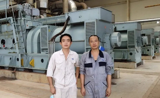 幾內(nèi)亞電站現(xiàn)場地處偏僻荒涼的山區(qū),缺乏起重用的吊車,只能靠肩扛人抬,效率很低。面對困境,尹旭明迎難而上,創(chuàng)造性地開展工作,經(jīng)常加班加點工作,解決了包括電機軸承溫度波動、磨損、機組振動大對底座高速的干擾等很多棘手問題。經(jīng)過3個月的頑強奮戰(zhàn),4臺機組現(xiàn)在已經(jīng)投入正常運行,滿足了客戶驗收生產(chǎn)節(jié)點要求,為公司樹立了良好的品牌形象。