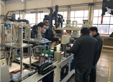 作為生產(chǎn)供貨單位,為了以最快速度擴(kuò)大產(chǎn)能,八院鵬力科技集團(tuán)黨支部組織成立“黨員突擊隊”,24小時無間歇輪班工作,帶頭加班加點(diǎn)投入專項任務(wù)研制生產(chǎn)。八院鵬力科技集團(tuán)僅用11天就完成N95口罩機(jī)、平面口罩機(jī)和壓條機(jī)樣機(jī)研制,僅15天就實現(xiàn)了量產(chǎn)設(shè)備的連續(xù)供貨??蒲袌F(tuán)隊正確處理抓質(zhì)量、促進(jìn)度的關(guān)系,按照軍工產(chǎn)品質(zhì)量要求,確保交付產(chǎn)品質(zhì)量過硬。