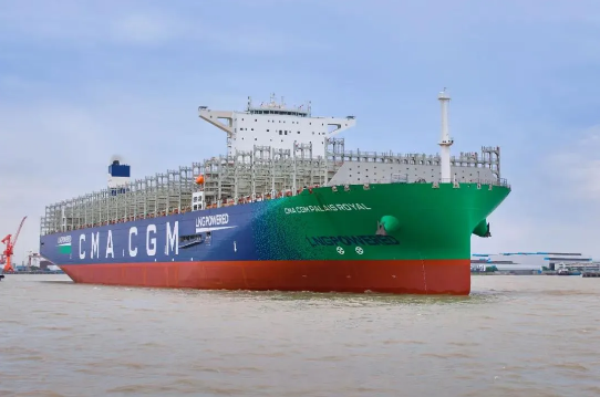 △ 滬東中華建造的23000TEU雙燃料集裝箱船“達(dá)飛皇家宮殿”號(hào)。