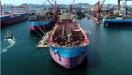1月4日,中國(guó)船舶集團(tuán)旗下大船集團(tuán)為馬士基油輪建造的11.5萬(wàn)噸原油/成品油船44號(hào)船簽字交付。該船總長(zhǎng)250米,型寬44米,型深21.9米,載重噸為11.5萬(wàn)噸,結(jié)構(gòu)吃水15.35米,設(shè)計(jì)航速14.5節(jié),掛新加坡旗,入英國(guó)勞氏船級(jí)社。為了滿足節(jié)能設(shè)計(jì)要求,該船螺旋槳前方的船體艉軸管上安裝節(jié)能型導(dǎo)輪,螺旋槳輕轉(zhuǎn)裕度不低于3%。