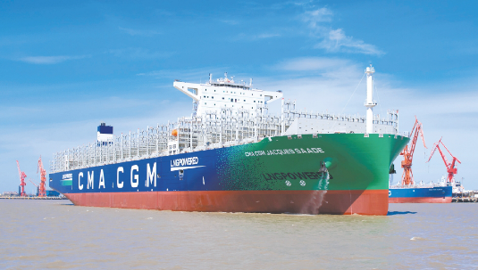——2020年9月,自主建造交付世界上首艘以LNG 為主要動力的噸位最大、集成世界最先進技術(shù)、環(huán)保性能最優(yōu)的23000TEU雙燃料動力集裝箱船“達飛雅克·薩德”號,并實現(xiàn)批量交付,進一步鞏固了滬東中華在超大型集裝箱船建造領(lǐng)域的行業(yè)領(lǐng)軍地位。這艘被譽為海上“綠巨人”的雙燃料動力集裝箱船,備受業(yè)界廣泛關(guān)注,她的成功建成交付是我國船舶工業(yè)高質(zhì)量發(fā)展取得的重要成果,彰顯了滬東中華雄厚的建造實力,也標志著中國船舶集團在世界大型集裝箱船領(lǐng)域成功實現(xiàn)從跟隨到引領(lǐng)。