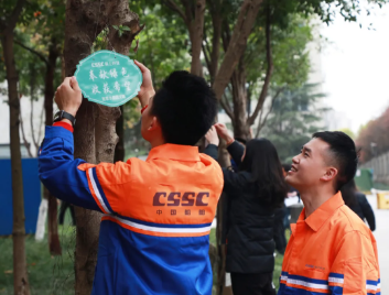 大家揮鍬鏟土、扶植樹苗、培土踩實