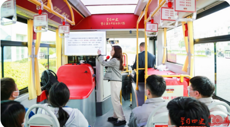 紅色巴士從浦東開發(fā)陳列館出發(fā),講解員帶領(lǐng)“乘客”一路學(xué)習(xí)小陸家嘴地標(biāo)背后的故事,感受國際金融中心的崛起,回顧浦東從阡陌農(nóng)田到高樓林立30年的發(fā)展歷程。窗內(nèi)窗外,歷史故事與魔都?xì)庀蠼豢?,邊行車、邊參觀、邊講課、邊互動的學(xué)習(xí)形式,讓“四史”學(xué)習(xí)的過程更具代入感。本次“四史”學(xué)習(xí)不僅激發(fā)了青年的拼搏意志,增強(qiáng)了對城市發(fā)展及企業(yè)改革的認(rèn)同感,更堅定了崗位立功的理想信念,引領(lǐng)青年不懈努力,為企業(yè)高質(zhì)量發(fā)展匯聚奮進(jìn)力量。