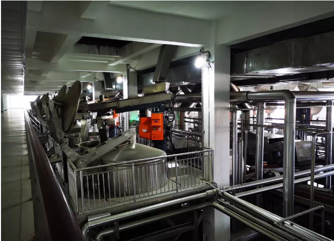 再比如古井貢酒智能釀造項目全自動控制蒸糧系統(tǒng),系統(tǒng)可實現(xiàn)自動開關(guān)蓋及翻轉(zhuǎn)。