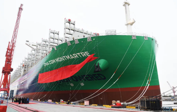 2017年9月,中國船舶集團(tuán)與法國達(dá)飛集團(tuán)簽署九艘23000TEU超大型集裝箱船建造合同,截至目前,已交付八艘。 該系列船均由中國船舶集團(tuán)七〇八所自主研發(fā)設(shè)計,是首次引入液化天然氣雙燃料系統(tǒng)的超大型集裝箱船。因為它又大又環(huán)保,是名副其實的海上“巨無霸”,我們都叫它“綠巨人”!