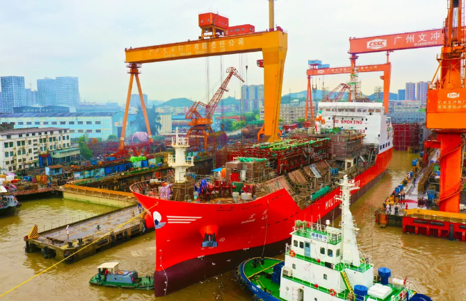 中國船舶集團(tuán)旗下黃埔文沖建造的9500立方米雙燃料動(dòng)力多用途氣體運(yùn)輸船首制船在近日出塢。
