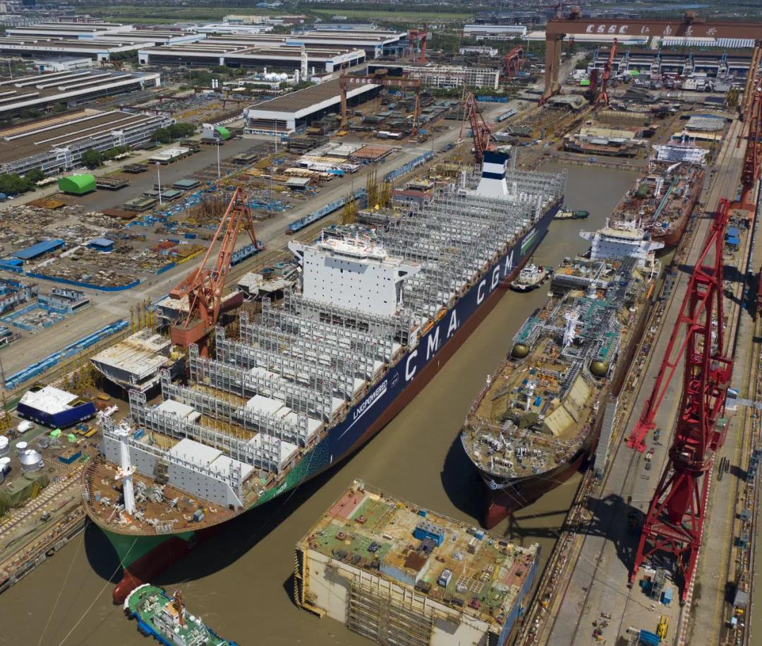 此次共有1艘15000TEU雙燃料集裝箱船、1艘86000立方米超大型雙燃料液化氣船、1艘98000立方米超大型液化乙烷運(yùn)輸船等3型號共計3艘整船出塢,同時還有2型2艘半船同批次起浮。